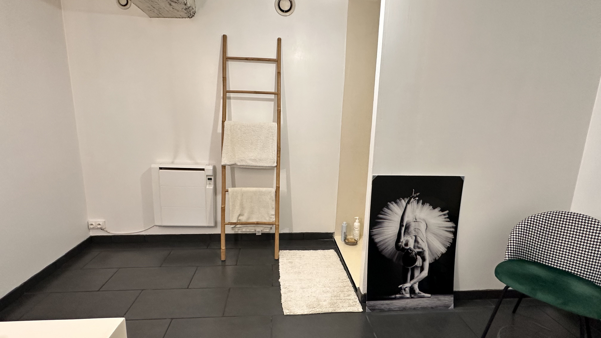 on oscille entre appartement et maison , bien que son petit jardin et sa dépendance au fond nous rappelle que nous sommes bien dans une maison.