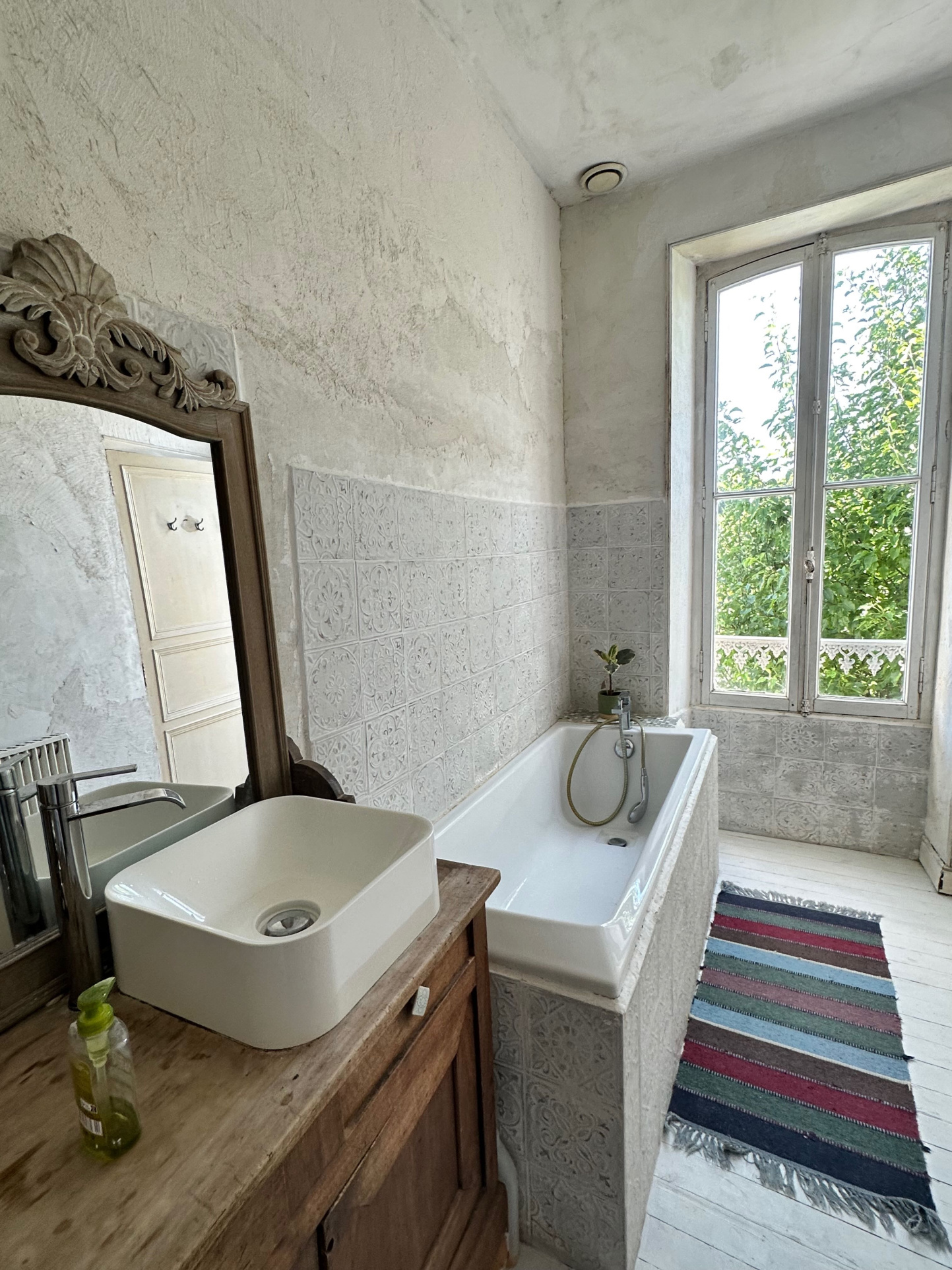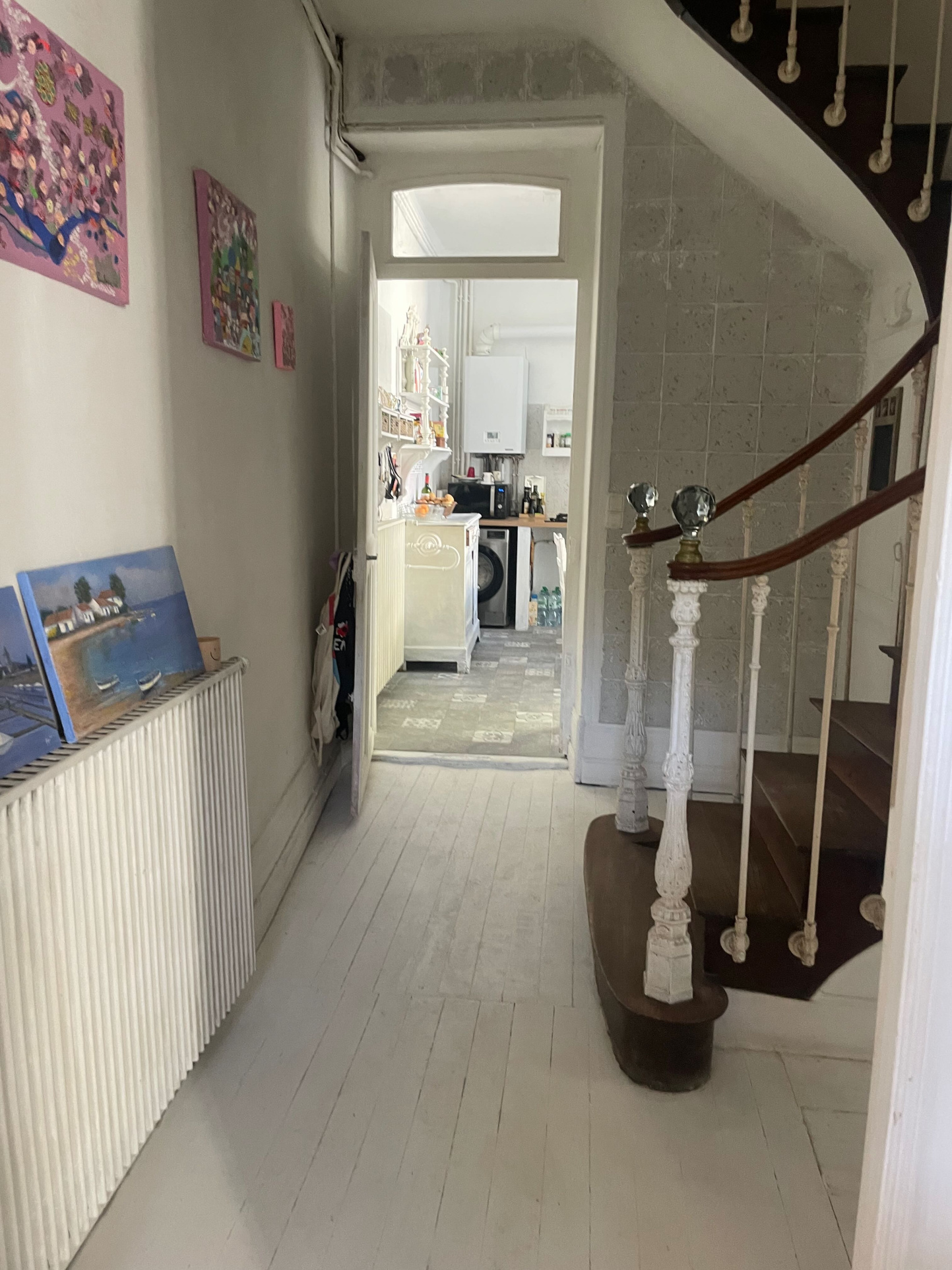 Cette maison coeur de ville nous a " tapé dans l'oeil!" ! Murs blanchis à la chaux, planchers peints, carreaux de ciments ... A quelques pas du marché, des commerces et des services, cette jolie maison n'attend que vous pour terminer sa rénovation.