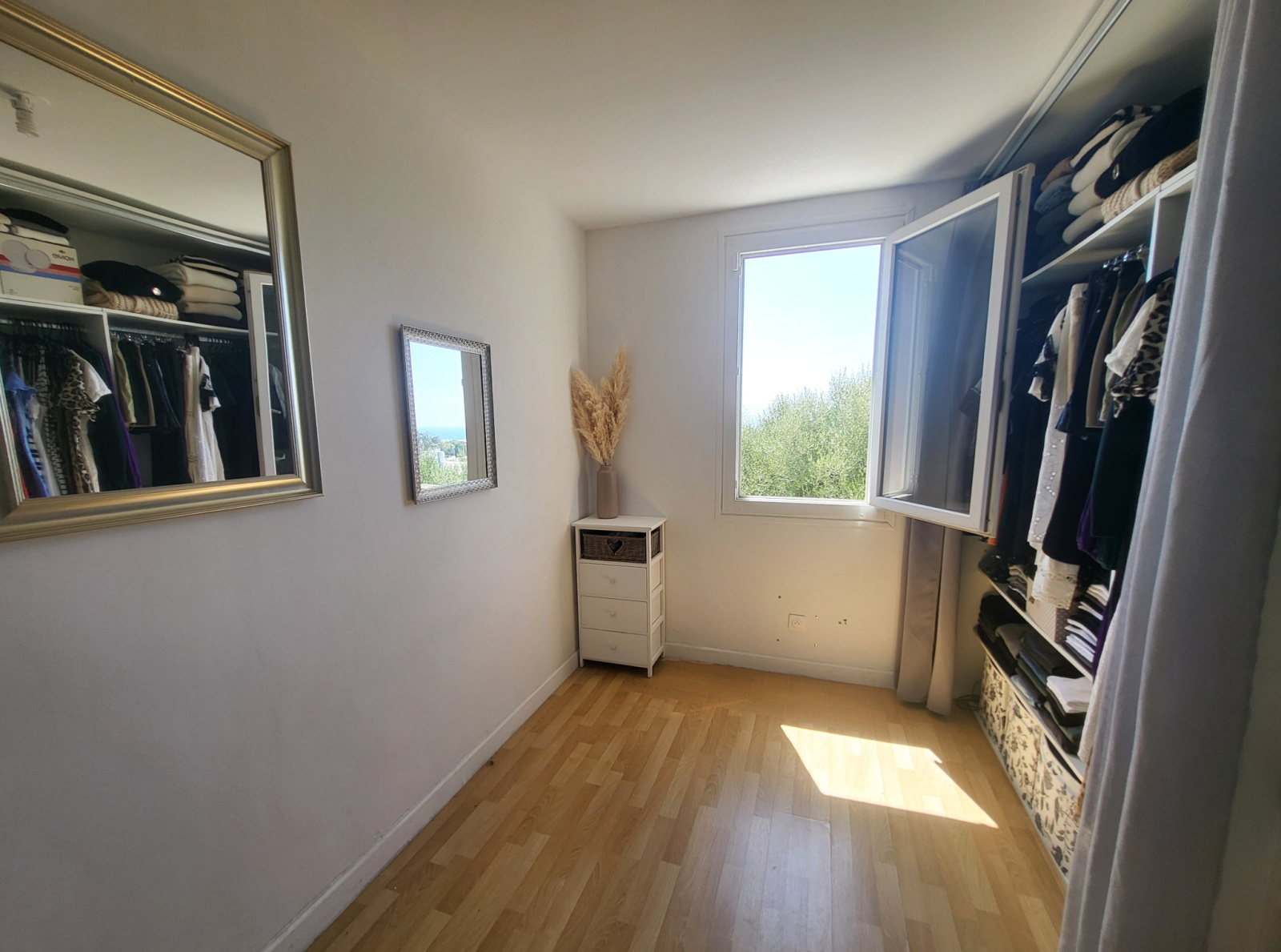 A saisir,. Entrée de Ville, Proche de l'aéroport, des plages, charmante maison mitoyenne avec 1 étage, agréablement exposée au Sud avec vue mer, dans un secteur calme. L'intérieur est en en bon état, Au RdC Entrée-Cuisine-Séjour, WC Visiteurs, Cellier. Le 1er étage a été entièrement rénové, 3 chambres avec placard, 1 salle d'eau avec WC suspendu et douche italienne. Double vitrage, climatisation. Cour-terrasse avec vue mer, d'env 40m² sans vis à vis.