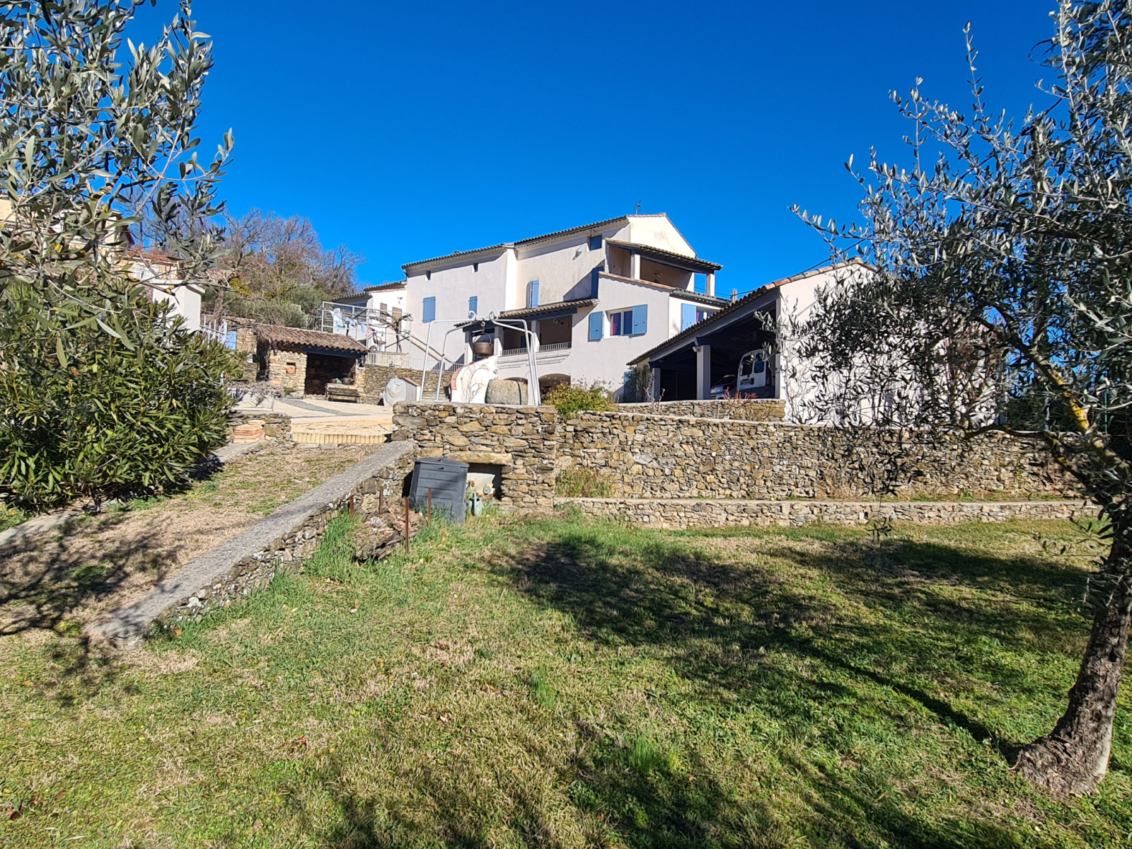 Superbe mas entièrement restauré, authenticité assurée, belle vue dominante avec accès au commerce à pied, terrain constructible de 2600 m² environ arboré d'oliviers + forage