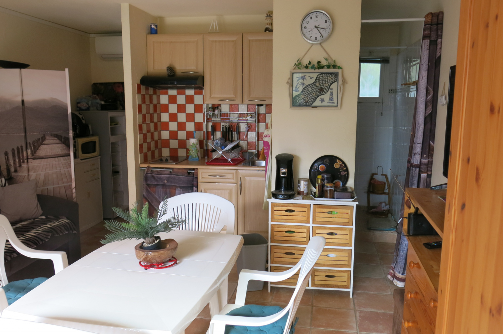 Il se compose d'une pièce de vie avec un kitchenette, une salle d'eau et des WC séparés.