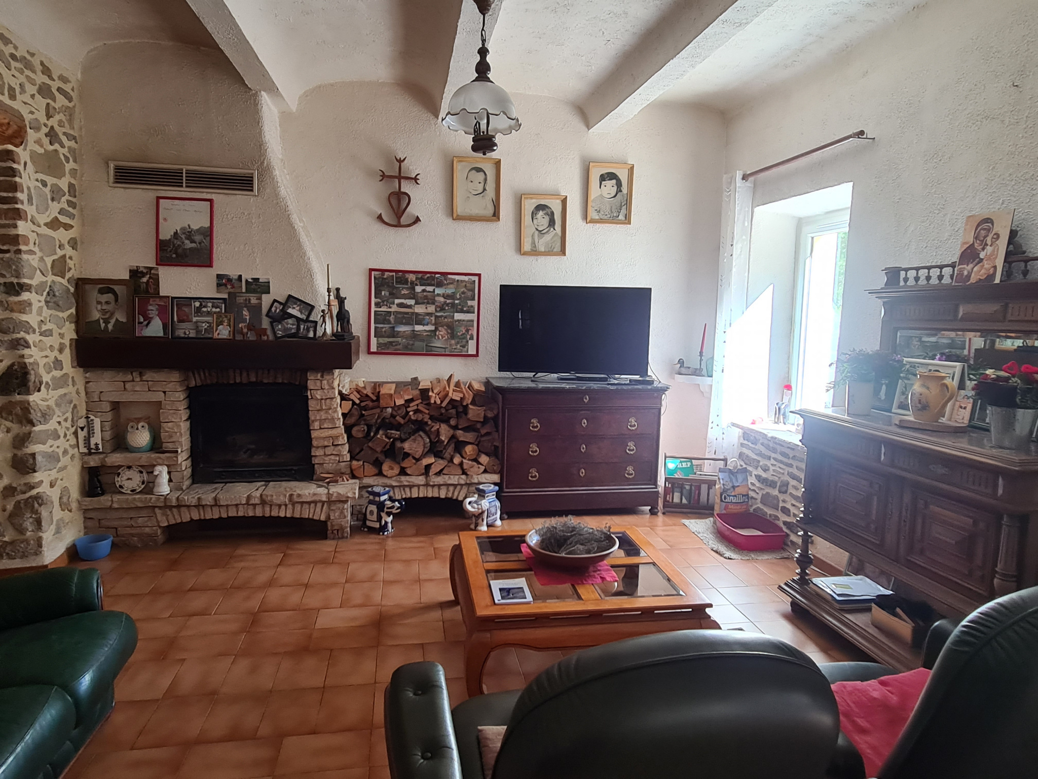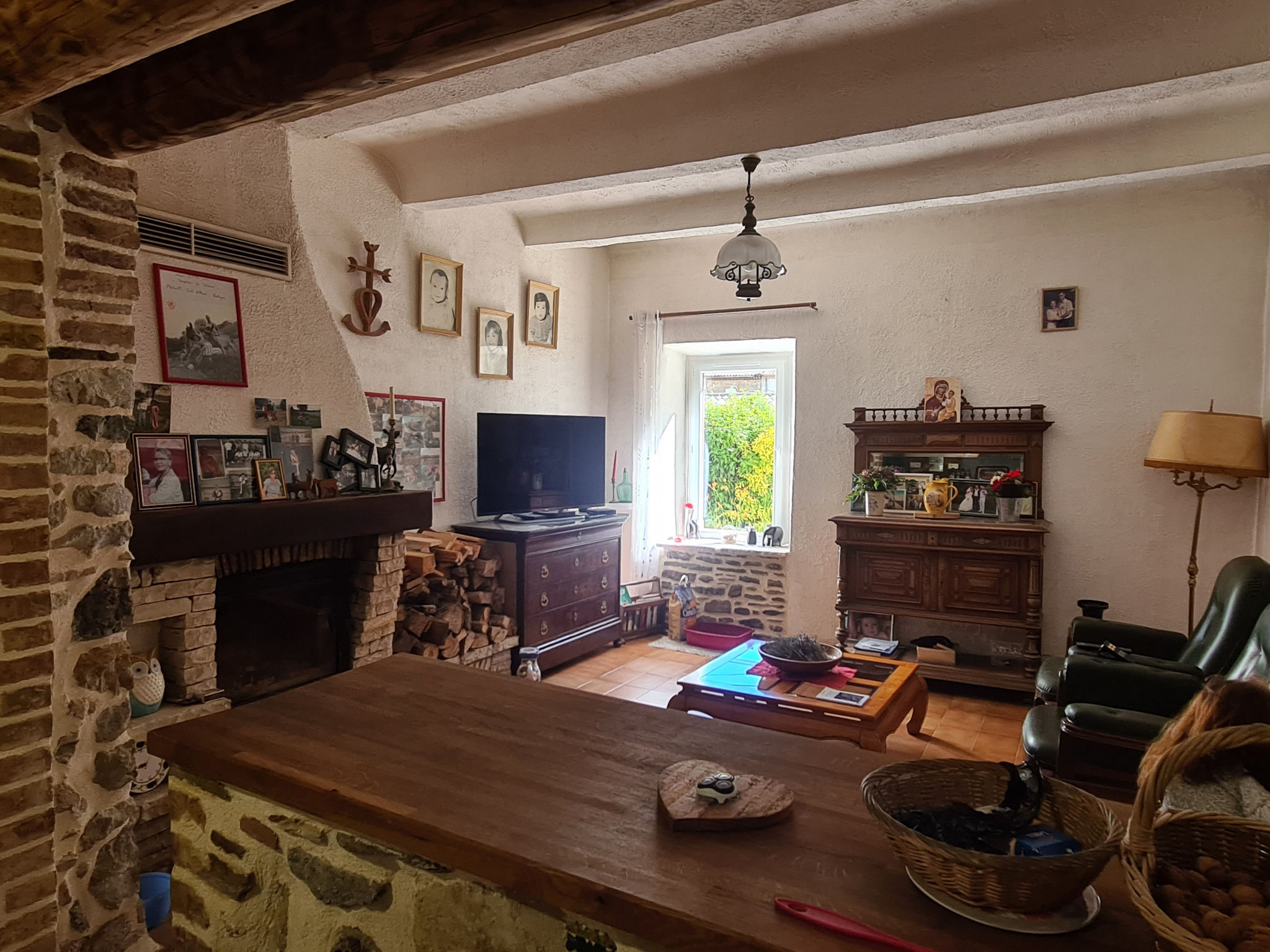 Au rez de chaussée se trouve un grand salon/séjour:cuisine de 53 m², une chambre avec salle d'eau un cellier et une buanderie