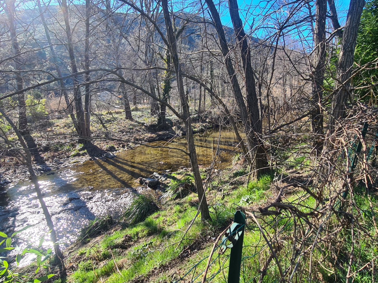 Grande terasse et terrain arboré de 1685m² en partie inondable, exposition SUD. Puit avec pompe.
