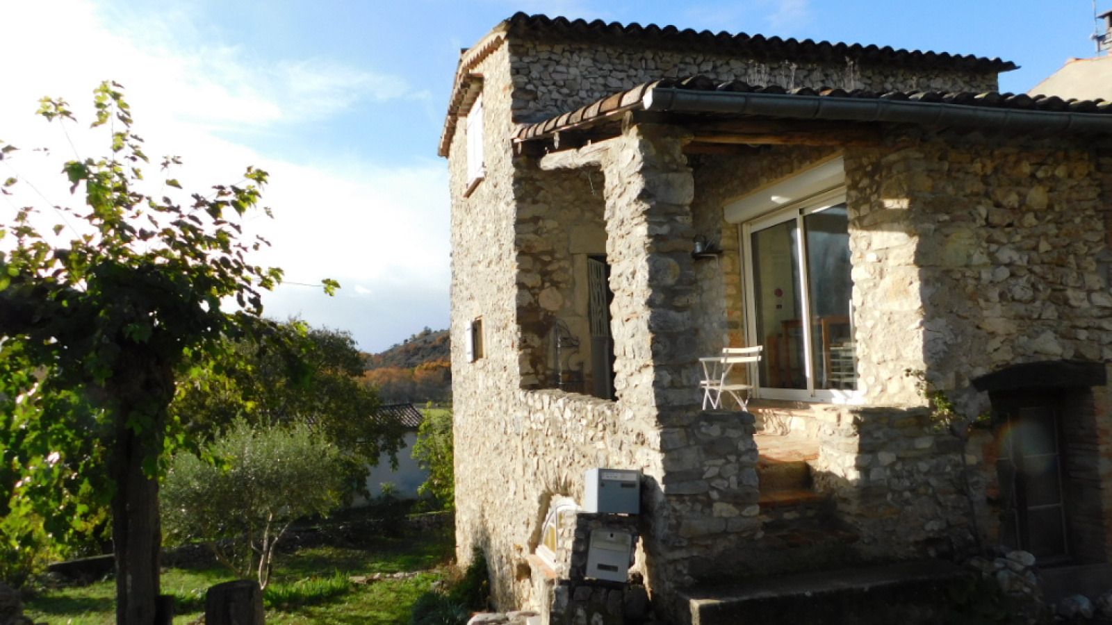 GARD 30, AXE ALES BARJAC UZES, A VENDRE MAISON EN PIERRES ATYPIQUE SITUÉE EN BORDURE DE HAMEAU MAISON COMPRENANT AU RDC SALLE DE BAIN WC A L'ETAGE SALON SAM CUISINE AU 1ER ETAGE UNE CHAMBRE PARTIE INDÉPENDANTE AVEC PIÈCE DE 30 M² ENVIRON ET BELLE TERRASSE PANORAMIQUE PARTIE INDEPENDANTE AVEC TERRASSE PANORAMIQUE AU CALME, A VOIR SUR LE TUC SAINT AMBROIX REF 91592