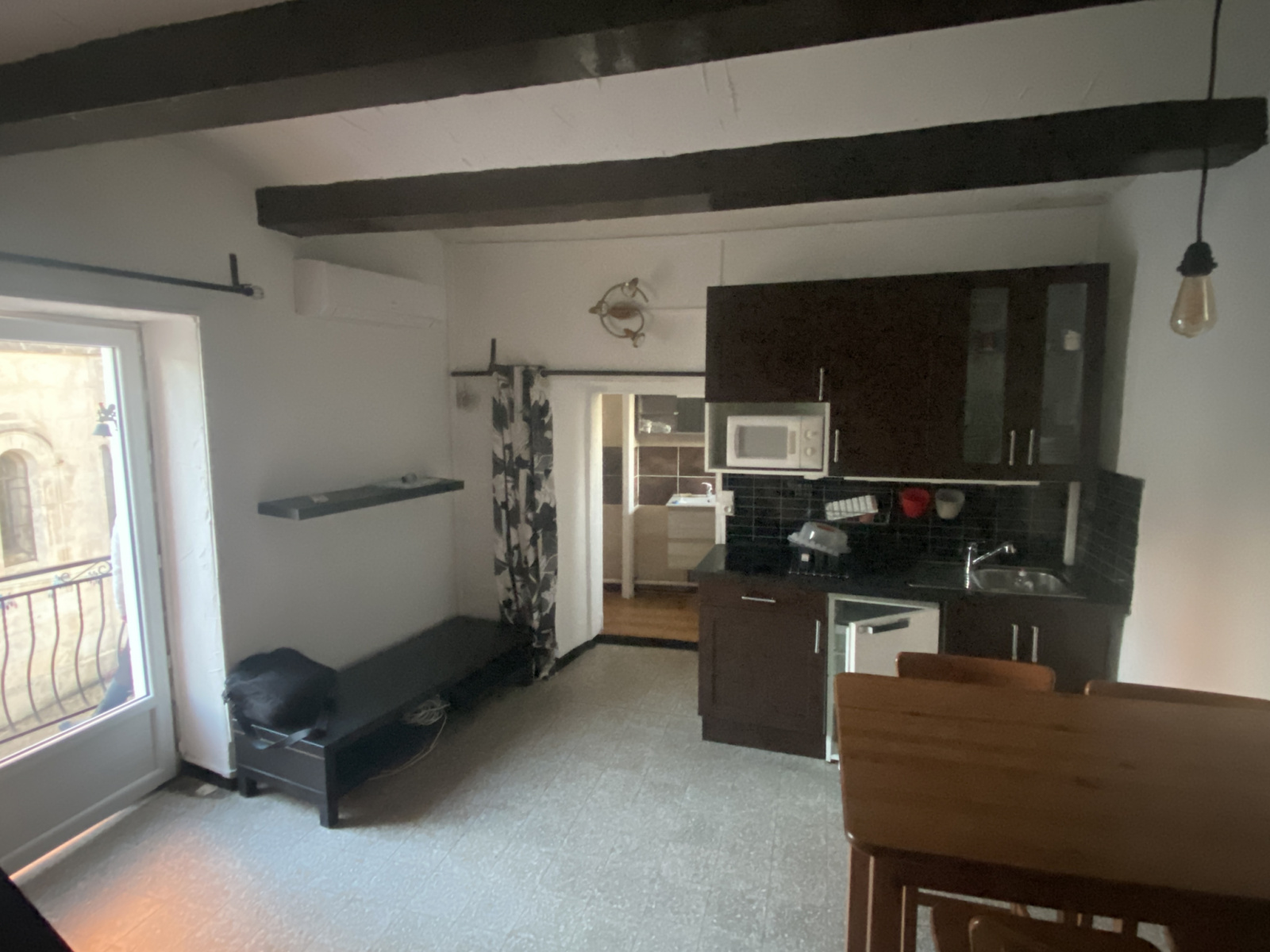 AU REZ DE CHAUSSEE SE TROUVE UN STUDIO COMPRENANT UN SALON/SEJOUR/CUISINE DE 17 M² ET UNE SALLE D'EAU/WC