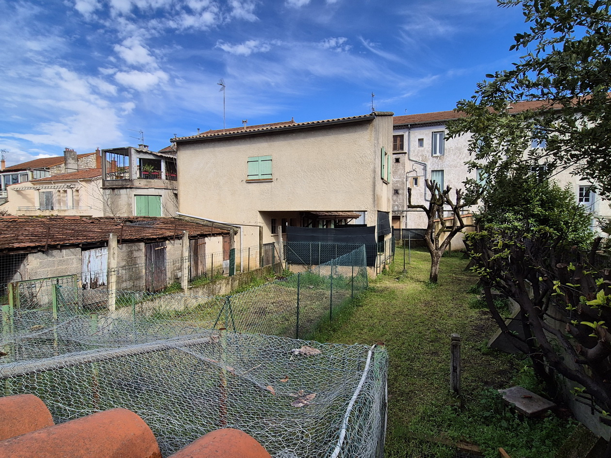 A vendre sur la commune d'Alès au calme quartier de la Prairie maison (87 m2) juste derrière un immeuble proche du centre-ville comprenant au rez-de-chaussée salon-séjour, cuisine indépendante équipée, salle d'eau, wc indépendant, buanderie, garage et à l'étage 2 chambres. Terrain clos de 460 m2. Plusieurs caves (Refaire toiture). Chauffage central au gaz de ville. Fenêtres en double vitrage bois. Tuc immobilier Alès Christophe Barthelot 06.12.50.71.31 Référence 3068 Prix : 148 000 € (Honoraires charge vendeur)