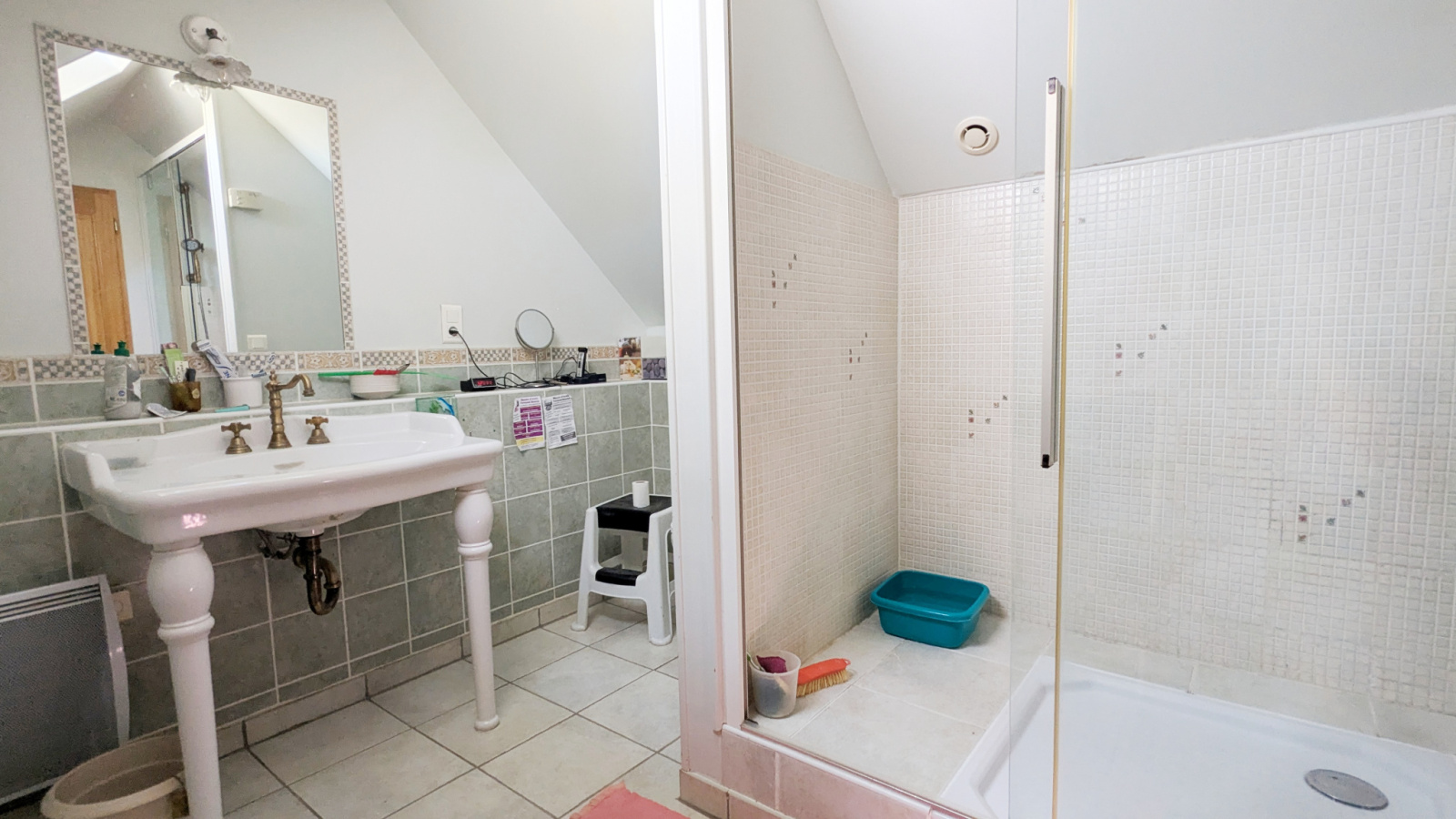 Possibilité d’aménager une troisième chambre à l’étage (18 m², isolation faite, fenêtre PVC double vitrage avec volet électrique)
