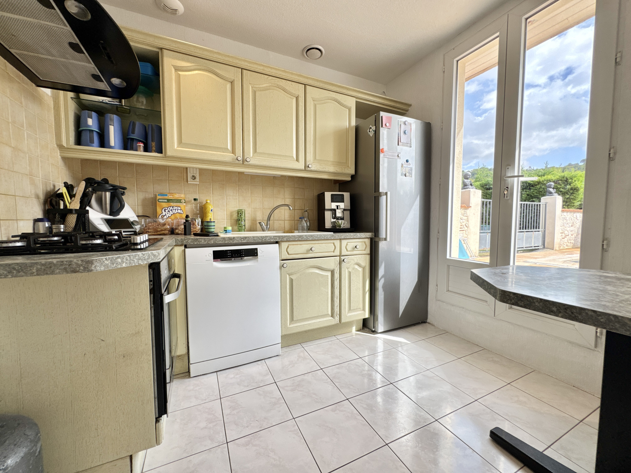 Le jardin est entièrement clos par des murs et des haies, sécurisés à l’aide d’un portail sans aucun vis-à-vis.