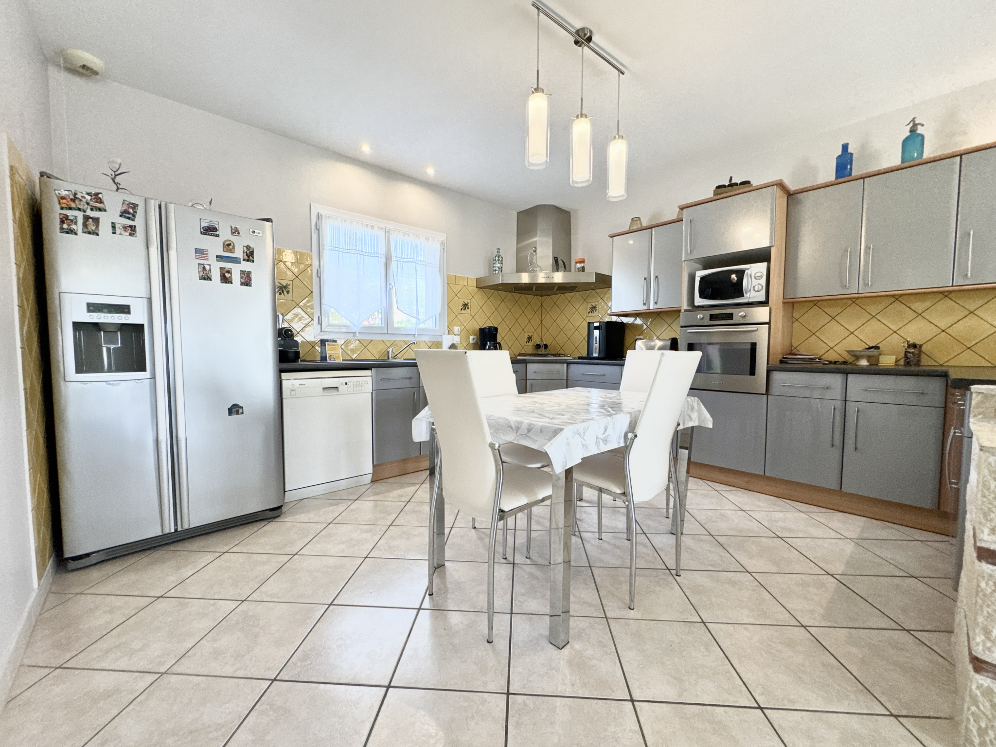 Venez découvrir cette maison contemporaine de 2004 tout confort, comprenant une entrée de 9,20 m² donnant sur une grande pièce à vivre lumineuse, grâce à ses baies vitrées, pièce climatisée avec cuisine américaine entièrement équipée, d’une surface totale de 56,26 m², très pratique avec son arrière-cuisine fermée de 8,24 m².