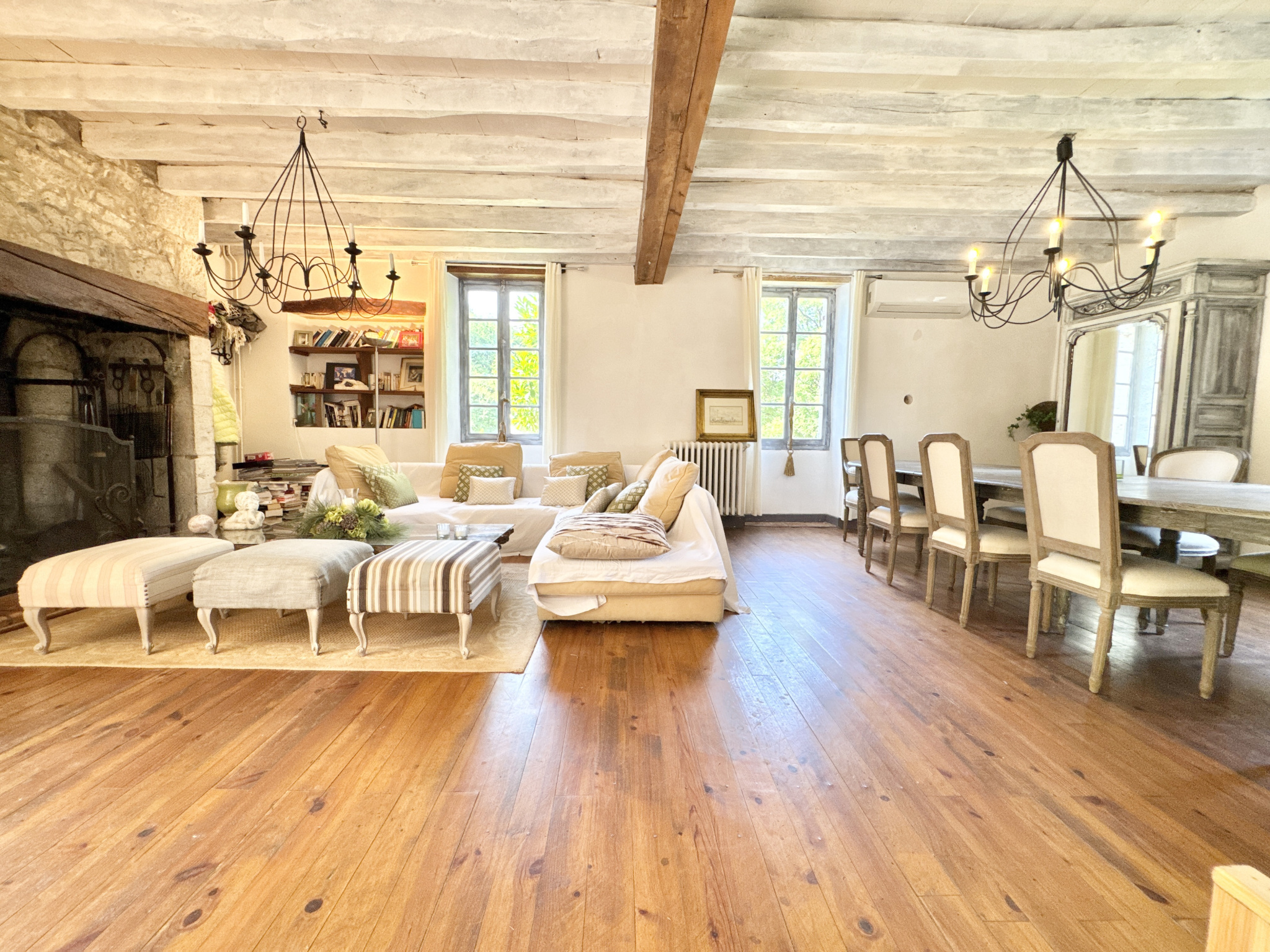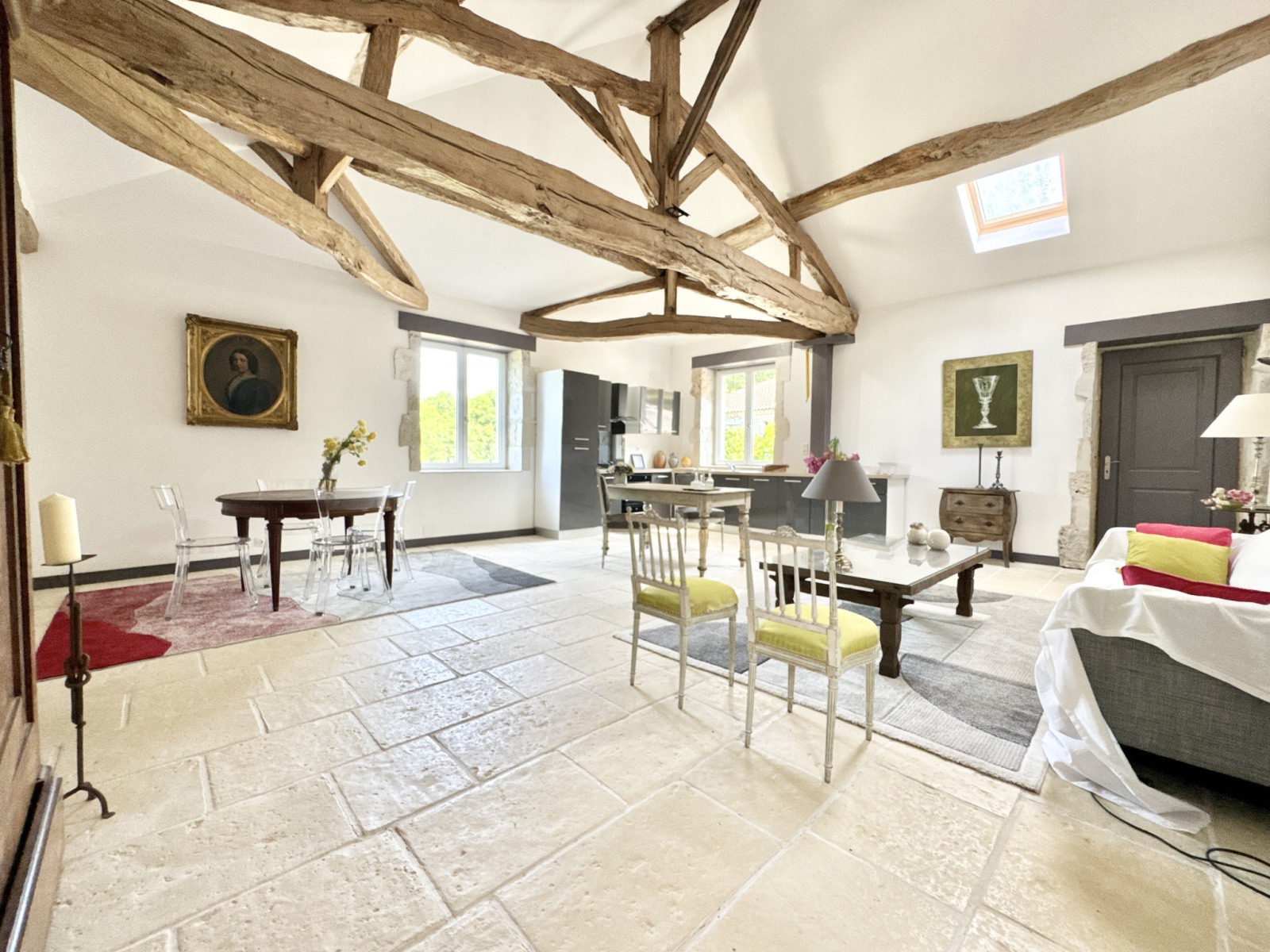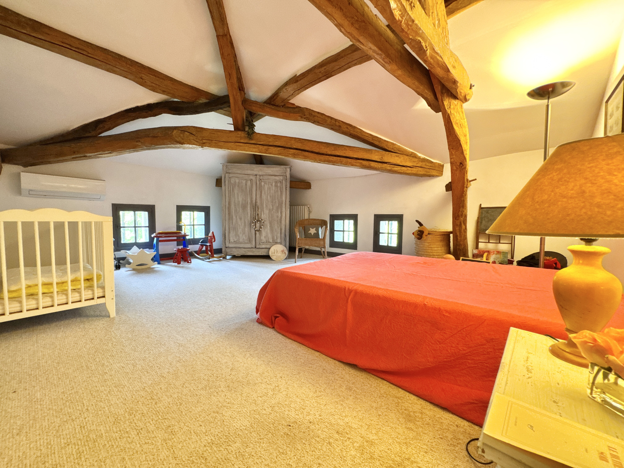 Le tout avec charpente apparente et parquet ancien au sol pour une authenticité garantie.