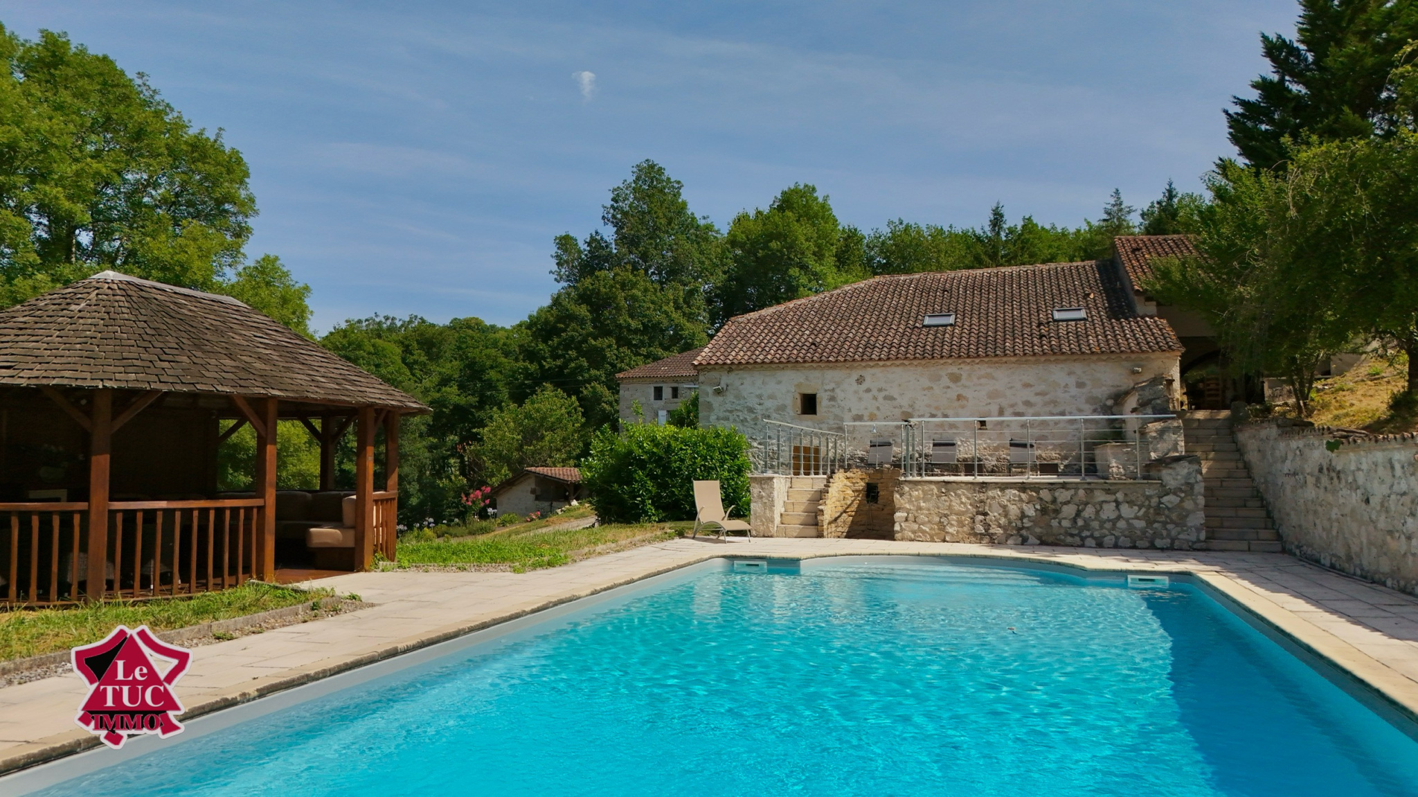 Côté détente, une large piscine au sel de 14 x 7 avec bungalow équipé d’un salon, salle à manger et d’un frigo.