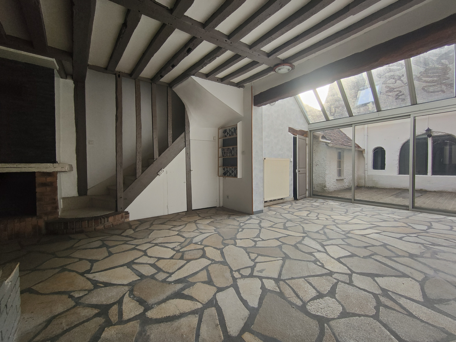 Plein centre ville, à proximité de la place du marché, dans une ruelle piétonne, Magnifique demeure de prestige en colombage bois de style ancienne atypique de 140 m² hab avec jardin, terrasse et studio attenant par un couloir sur l' arrière, avec possibilité de louer un garage juste à coté, comprenant un séjour double de 40 m² avec une belle cheminée équipée d' un insert et cuisine équipée neuve à l' américaine attenante, un deuxième salon de 15 m² avec mezzanine au dessus aménagée en chambre dans la partie studio, veranda attenante au séjour donnant sur une terrasse en caillebotis de 15 m², trois belles chambres à l'étage, et possible quatre en divisant celle de 40 m² sous les combles, grande SDB avec baignoire-douche, WC, cellier, cave, buanderie, chaufferie avec chaudière au gaz de ville offrant un DPE en D, grande terrasse en caillebotis avec studio donnant sur un petit jardin en pelouse d' environ 50 m² clos de murs en briques, au calme sans vis à vis, bien chez soi, le tout très bien situé dans une ruelle piétonne paisible à l' abri des regards, dans la rue d' Alsace, avec un coin de jardin au coeur de la ville à deux pas de la gare et de la place du marché. La maison a dejà été vendue mais le crédit a été refusé...