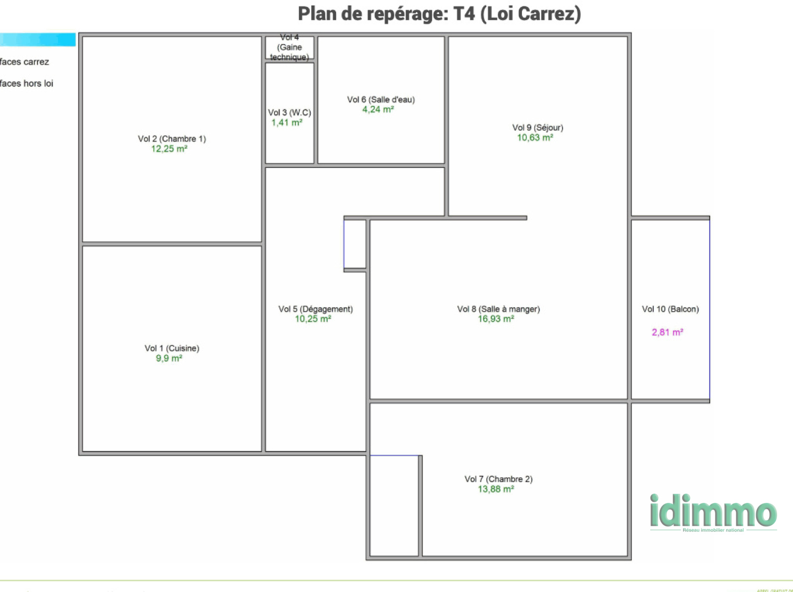 Surface Habitable 79.36m2 comprenant, entrée, séjour avec balcon, cuisine équipée meublée, 3 chambres, salle d'eau, wc, nombreux rangement.