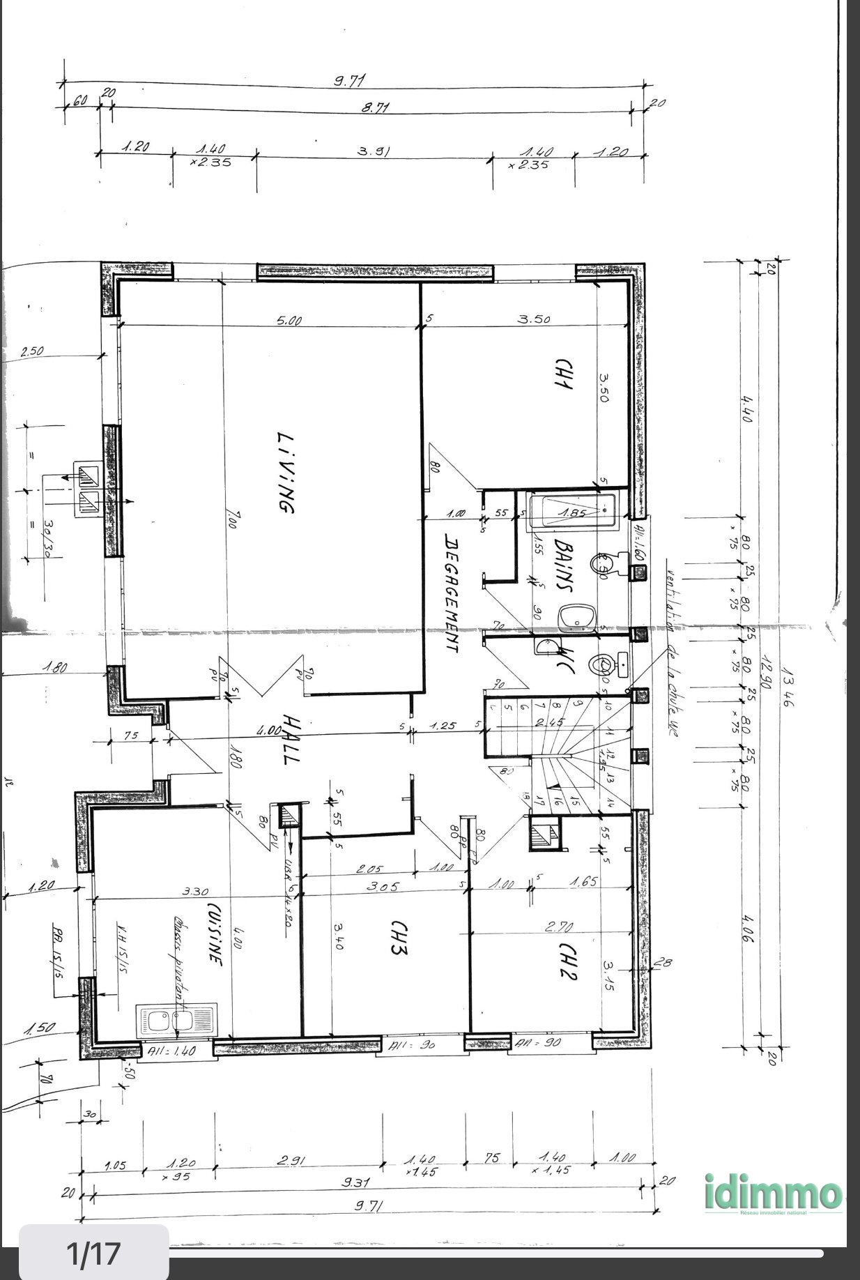 A l'étage entrée 8,78m2, cuisine a vivre 16,89m2, vaste séjour 41,28m2, 3 chambres 14 13 et 12m2, salle de bains 7,09m2